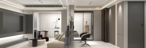 首先,全屋家具统一采用低矮、浅色(米白、奶咖、浅灰)款式,减少视觉阻挡。