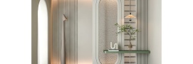 无独立玄关的户型,可通过“造”出空间感来解决。方案一:沿墙打造一体化柜。
