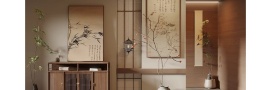 在入户门一侧的墙面,定制一个集鞋柜、餐边柜或储物柜于一体的综合柜体,面向门处设计为玄关功能(换鞋、挂衣),面向室内处可作为展示柜或收纳柜。