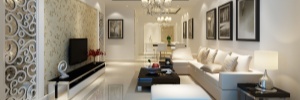 客厅优先选通体砖或抛釉砖,硬度高、耐磨、易清洁,颜色选浅灰色、米白色,显宽敞,规格建议800*800mm,铺贴简单且大气。